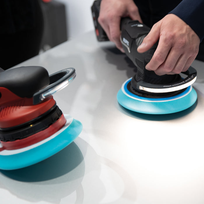 Take your paint correction to new heights with the unique high CRI+ work light for direct mounting on your polisher. The perfectly curved light beam and exchangeable battery provide ideal conditions for extensive and demanding polishing tasks.